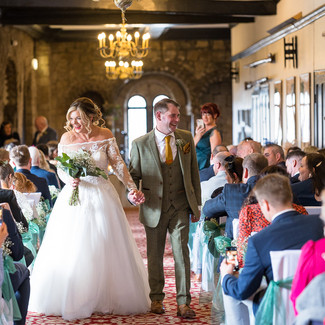 Siobhán and Dan's day featured a lot of live music. A string quartet played during the ceremony and drinks reception (North East Soiree Quartet), which worked really well given the castle setting. After their wedding breakfast, a guitarist and singer performed in the bar, which added to the atmosphere (Booty and the Beard Band). Finally, to help everyone party the night away, The Emerald Thieves Band provided entertainment on the night.